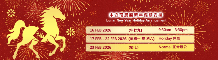 本公司農曆新年假期辦公時間安排 : 年初一至初六 : 假期 初七 : 正常辦公