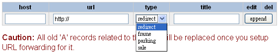 域名轉址指 如您的域名是"http://www.abc.com",實際上您想別人在瀏覽器上輸入"http://www.abc.com"而進入另一個網站"http://www.def.com",便可以在<<URL Forwarding>>進行轉址設定。